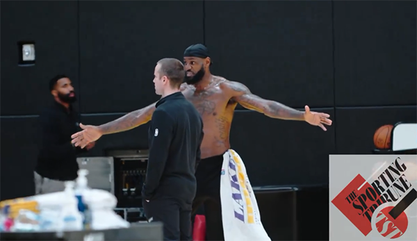 39岁詹姆斯赤膊飞扣 与教练讨论防守并亲自演示