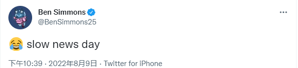 西蒙斯发推写道:slow news day(笑哭表情);西蒙斯还转发未婚妻此前的推文:请停止相信所谓的消息源。