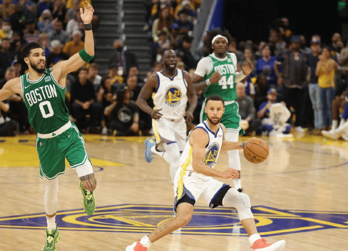 首节比赛,勇士开场不顺,库里被斯玛特贴身防守以及包夹,甚至被绿军四人围剿,不过打着打着,凯尔特人突然失误不断,勇士趁机反扑,库里三分开张,小佩顿和普尔输送三分火力,库里强突压哨抛投,第一节打完勇士31-30反超1分,库里单节10分,凯尔特人双探花塔图姆和布朗同时输出,两人单节合力投进6记三分合砍26分。
