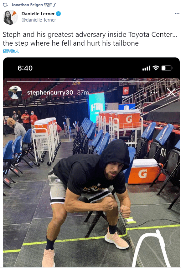 对此名记转发库里搞笑合影,发推写道:库里职业生涯最大的敌人是丰田中心的台阶,当时他受伤倒地,伤了他的尾椎骨。