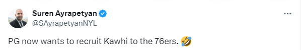 球迷调侃小卡退出国家队后彻底放松了,还有球迷表示现在乔治想要招募小卡加盟76人。