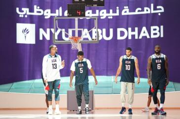 今夏美国男篮先是在拉斯维加斯进行了为期一周的集训,热身赛轻松击败加拿大男篮后他们飞往阿布扎比,在这里美国队继续训练,队内训练欢乐多。