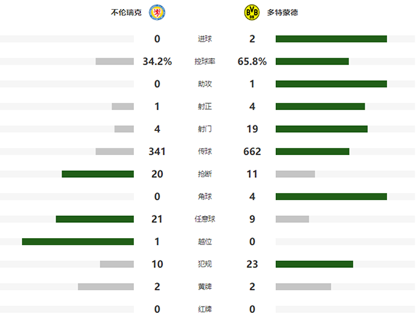 第12分钟,多特蒙德取得领先,桑乔开出前场左路任意球,德莱尼前点踢空,胡梅尔斯左脚扫射将球打进,布伦瑞克0-1多特蒙德。
