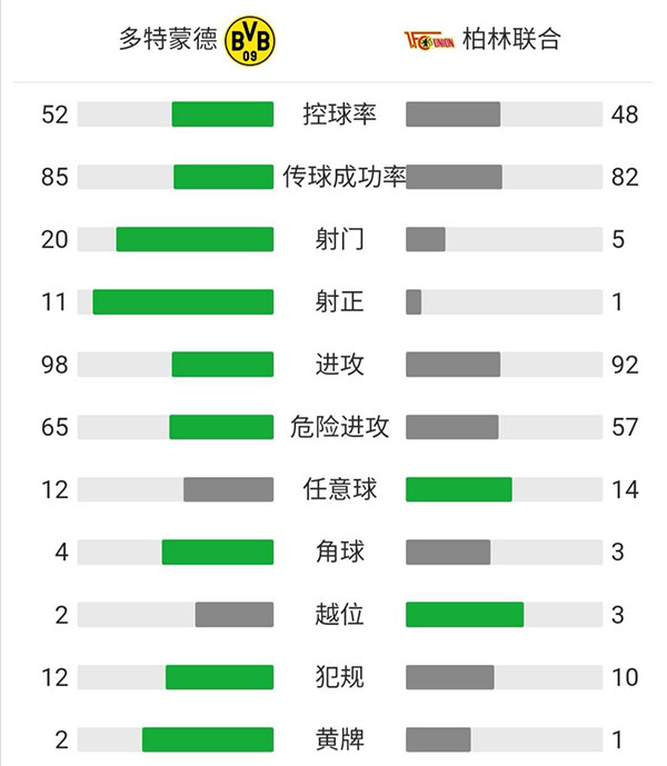 来源:24直播网04-22 12:03 24直播网讯:北京时间4月22日02:30,德甲第30轮继续进行,多特蒙德坐镇主场迎战柏林联合。上半场,因瓦尔特森开场12秒远射击中横梁,随后罗伊斯造点,哈兰德操刀被扑,罗伊斯跟进补射得手。下半场,克鲁泽任意球攻门击中立柱,布兰特助攻格雷罗锁定胜局。最终,多特主场2-0击败柏林联合。