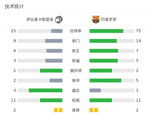 第31分钟,尤尼恩斯塔斯左路策动攻势,胡安-塞拉诺送出传中,阿尔瓦罗-戈麦斯凌空抽射攻破佩尼亚十指关,尤尼恩斯塔斯1-0巴塞罗那。