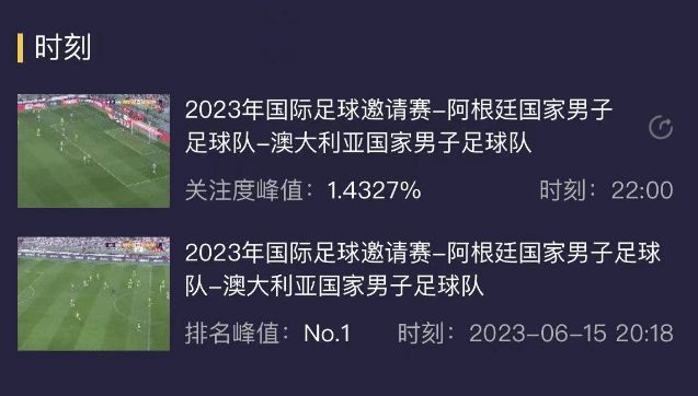 这场比赛的关注度极高,除了是阿根廷队世界杯夺冠之后的客场首秀,还是梅西率领世界杯夺冠阵容在北京工体出战,影响力巨大。赛后的收视率显示,这场比赛的巅峰时刻收视率突破1.4%,排名全国第一,很多无法去到现场的球迷们,通过电视观看了梅西的里程碑之战,阿根廷队2-0拿下胜利。