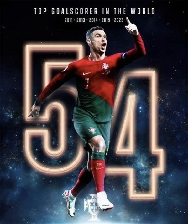 刚过去的2023年,38岁的C罗依然保持极佳的竞技状态。各项赛事59场比赛打进了54粒进球,他也力压姆巴佩、哈兰德和哈里-凯恩等神锋,生涯第5次获得年度射手王的称号。
